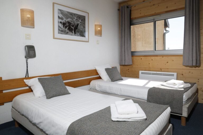 36 chambres de 2 à 5 personnes avec TV, salle de bain privative, vue sur les pistes ou la vallée. Linge fourni, chambres communicantes disponibles. Idéal pour héberger vos équipes en séminaire résidentiel.