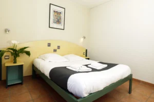 75 chambres doubles ou twins pour 220 lits. Logements avec espaces nuit distincts. Capacité de 170 à 226 personnes selon répartition. Hébergement confortable au cœur de la Provence.